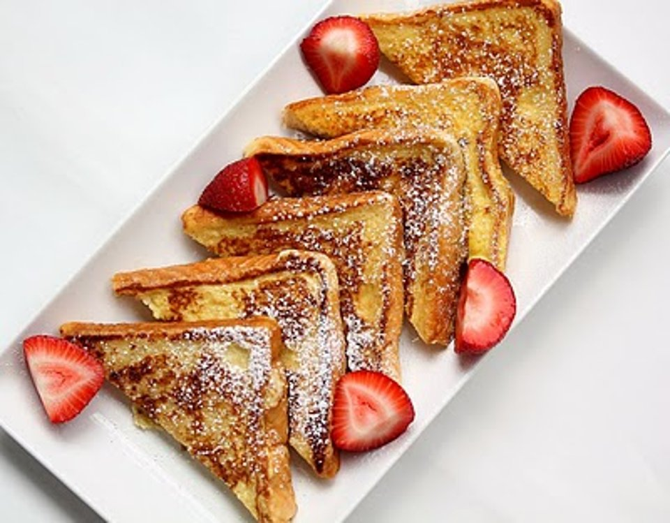 Обмакиваем хлебушек в нашу смесь, сковородку подогреваем с кусочком сливочного масла и обжариваем хлеб с двух сторон до хрустящей корочки.
