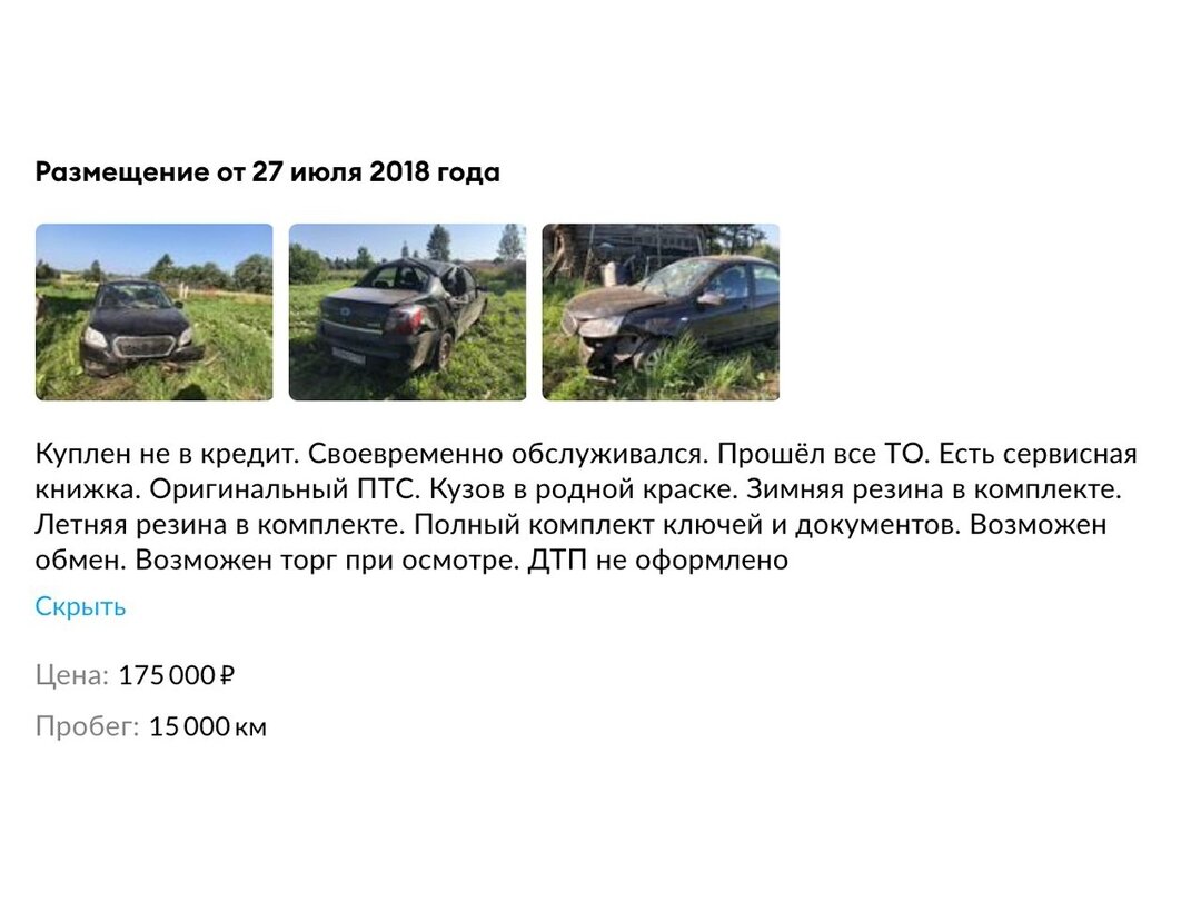 Спустя какое-то время, снимается объявление, но не по причине продажи! После, 4 июня появляется новое, не понимаю в чем смысл, но цена упала до 355 тыс. руб. И машина до сих пор не может найти своего хозяина. В июле, ценник падает снова на 25 тысяч. И ровно через две недели, авто находит своего покупателя и продается. К чему весь рассказ: хозяин ни в одном объявлении не озвучивает, что авто