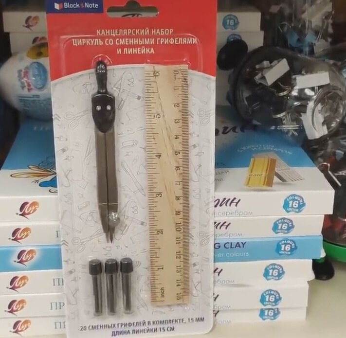 Канцелярски набор "Циркуль и деревянная линейка" 99 руб Циркуль со сменными грифелями. Грифелей - 20 шт. + деревяная линейка длиной 15 см. Оптимальное решение для школьника. Покупая готовальню мы переплачиваем за невсотребованные в школе инструменты для черчения. По сути дела школьнику из всего набора требуется только циркуль. Так что данный набор в любом случае будет полезен. Набор чернографитовых карандашей. 12 штук 55 руб Есть так же набор порстых карандашей в пластиковом корпусе. 12 шт. 77 руб Набор механических карандашей. 5 шт. 99 руб Папки для бумаг 77 руб Застегиваются на зип-молнию. Папки для труда 149 руб Материал: силикон Двусторонняя клейкая лента 55 руб Набор - 2 шт. Одна лента шириной 1 см, вторая 1,5 см. Длина каждого рулона 12 м. Подходит для бумаги, пластика стекла, подходит для крепления на стены. Набор фигурных точилок, 4 шт 55 руб Ластик с точилкой 55 руб Универсальное решение Механическая точилка 249 руб Два режима заточки карандашей: Остры