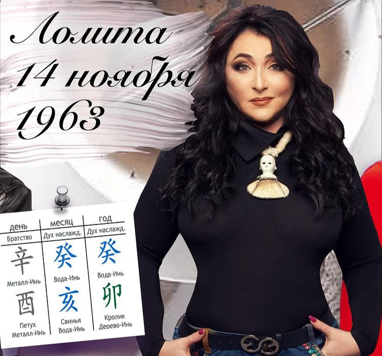 Лолита Милявская 14 ноября 1963 год Про столп личности Металл Инь на Петухе писала уже не раз. Сочетание ума и красоты. Это люди утонченные и элегантные, добиваются совершенства в своем деле, привлекательные, харизматичные, выделяются среди остальных, стараются сиять, обладают хорошим вкусом и отличным чувством юмора, если захотят могут ранить словом.