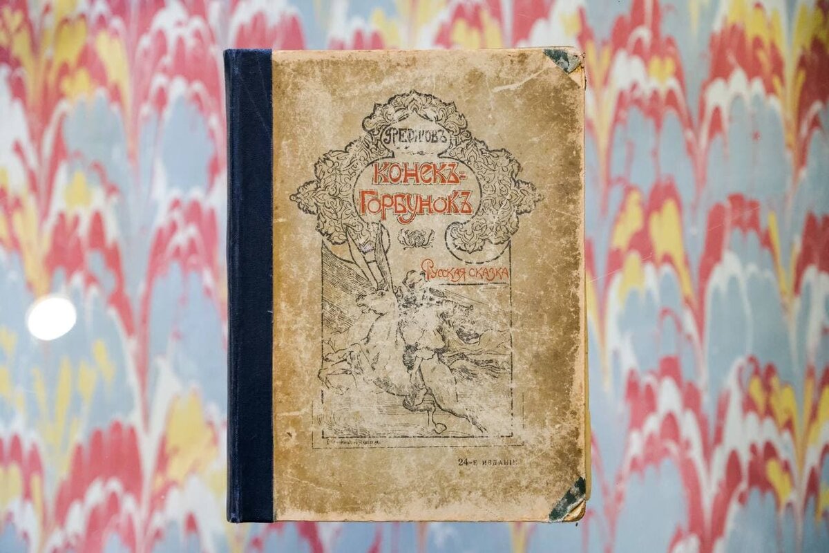 «Конек-горбунок» П. Ершов, 24-е издание. Частыми гостями у нас в мастерской оказываются сказки. На этот раз мы отреставрировали интересную, полную различных отсылок и тайн сказку Петра Ершова «Конек-горбунок». Она была почти забыта в 19 веке и при жизни писателя не была такой популярной, зато в XX веке ее с удовольствием читали и дети, и взрослые. Наша задача заключалась в восстановлении классического переплета: на уголках были едва заметные кусочки зеленого коленкора, что мы и взяли за основу при восстановлении переплёта. Это произведение поистине считается народной сказкой- здесь нашли отражение аллюзии на персонажей из фольклора, а также критика и сатира царского режима. Интересно, что среди исследователей этой сказки авторство Ершова все еще остается под сомнением. Ведь известно, что еще в 18-летнем возрасте он познакомился с А. С. Пушкиным. В качестве аргументов того, что автором является Пушкин, приводят целый ряд фактов. Во- первых, сказка написана слогом, очень похожим на Пушки