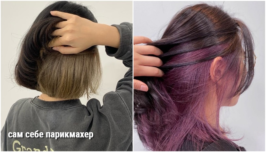 Такое контрастное окрашивание здорово выделяет стрижку, поэтому перед тем, как окрасить нижние пряди, сделайте стрижку или просто подровняйте концы. Так краска ляжет лучше. Чтобы окрашивание получилось четким, следует отделить верхнюю часть волос буквально ювелирно, с помощью специальной расчески. Если ваши волосы темные, то сначала нижнюю часть следует осветлить, а потом затонировать в нужный оттенок.
