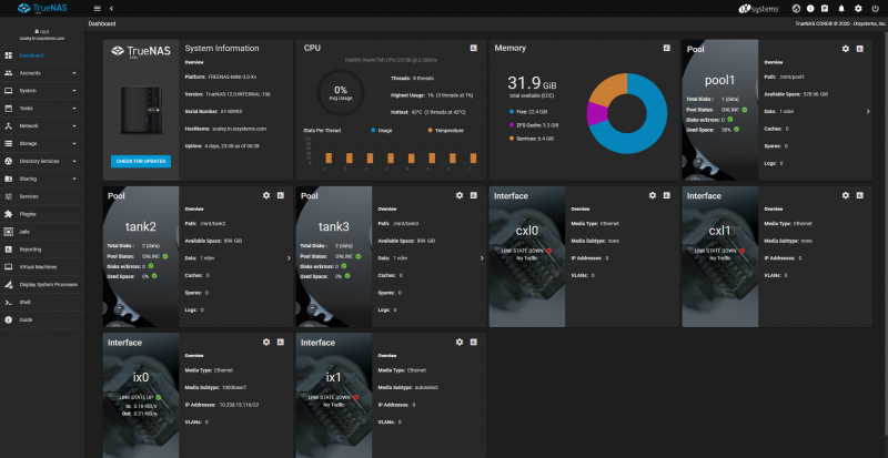 В октябре 2020 года началась миграция с FreeNAS на TrueNAS. Это перевод не был быстрым, но, похоже, он подходит к финалу. Компания iXsystems сообщила, что отправляет FreeNAS на покой, переводя дистрибутив в категорию устаревших. По данным компании, более 70% пользователей FreeNAS 11.3 уже переехали на TrueNAS, и под управлением TrueNAS 12.0 сейчас находится порядка 1,5 Эбайт данных. В ближайшем будущем сайт FreeNAS.org будет перенаправлять посетителей на сайт TrueNAS.com. Для большинства пользователей изменений будет очень мало, но поисковые запросы будут перенаправлены на TrueNAS, а не на информацию об устаревшем ПО. Впрочем, скачать старые версии FreeNAS ещё какое-то будет можно. Для замены бесплатной версии и обновления сборки 11.3-U5 предлагается TrueNAS 12.0-U5. Этот же дистрибутив будет по умолчанию поставляться со всеми новыми продуктами компании. Если используется более старая сборка, то рекомендуется сначала обновить её до FreeNAS 11.3-U5, а затем переключиться на TrueNAS 12.0