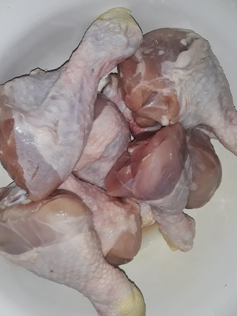 Уверяю, так приготовленная голень, удивит и порадует даже заядлых любителей фаст-фуда! Советую приготовить большую порцию, так как, кто-нибудь, обязательно попросит добавки. Итак: Куриную голень, у меня семь штук, хорошо промываем под проточной водой, и подсушиваем бумажными полотенцами. Теперь приготовим смесь из специй, в которой замаринуем голени: Полторы столовые ложки паприки. Столовую ложку универсальной приправы. Я пользуюсь вот такой. Пять мелких зубчика чеснока. Если у вас чеснок крупный, тогда достаточно 3 зубчиков. Натираем чеснок на мелкой тёрке. Можно так же, мелко порезать или воспользоваться чеснокодавкой. Солим по вкусу. У меня 1 чайная ложка. Не забываем, что универсальная приправа тоже солёная! Перемешиваем до однородной массы. Натираем тщательно каждую голень. Оставляем мариноваться на 3 часа. Когда голень замариновалась, наливаем на сковороду растительное масло. Много не нужно, достаточно 10-15 миллилитров. Голень даст достаточно сока и жира. Когда сковорода накали