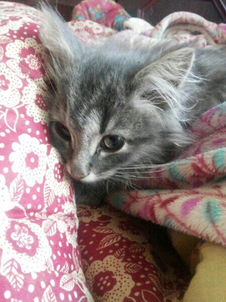 Этого малыша нашла Миля в плачевном состоянии одного, на улице. Оставить его погибать девушка не смогла и занесла домой. Котенок выглядел крайне несчастным и был абсолютно мокрым от недавно прошедшего дождя. Похоже малыш даже не искал укрытия, так ему было плохо. Маленькое тельце было тощим, ребрышки без труда прощупывались, даже можно было увидеть как они выпирают под мокрой шерстью. Ну вот сколько дней котенок не ел, чтобы дойти до такой стадии истощения? После помывки Миля избавила малыша от блох, не используя противоблошинный шампунь, боясь, что котенок тоже отравится. Но, как оказалось, истощение и блохи это только верхушка айсберга бед Мишутки. На следующей день, ветеринар обнаружил застарелый, неправильно сросшийся перелом бедра. К тому же, на месте перелома развивался нарыв, который доставлял сильную боль котенку. И диарея... С котенка буквально лилось. Было назначено лечение: К концу назначенного лечения нарыв прорвало и Мишеньке стало чуть легче. Ведь из-за постоянных ноющ