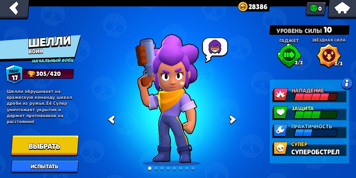 Всем привет это новый канал по бравл Старс и это обзор игры Шелли- начальный боец вот так он выглядит: На этого бойца много скинов и сейчас я покажу их все(скины можно покупать): Первый скин "бандитка Шелли" его можно купить за 30 кристаллов Этот скин называется "звездная шелли" и его можно было забрать в начале игры в виде подарка в 2018 году Этот скин называется "ведьма Шелли" он продаётся на Хэллоуин, стоит 150 кристаллов Скин называется "Шелли PSG" давался за испытание кто его прошёл в 2019 году или за 80 кристаллов Этот скин называется "серебряная Шелли" его можно купить за 10000 монет когда у бойца 10 сила Этот скин называется "золотая шелли "его можно купить после серебряного скина за 25000 монет Этот скин называется "Шелли бока хуниорс " его можно купить за 49 кристаллов Этот скин называется "Шеллии америка" и его можно купить за 49 кристаллов Это скин называется "Шелли универсидад де Чили" На этом скины на Шелли заканчиваются, а сейчас я покажу вам значки на Шелли Эт