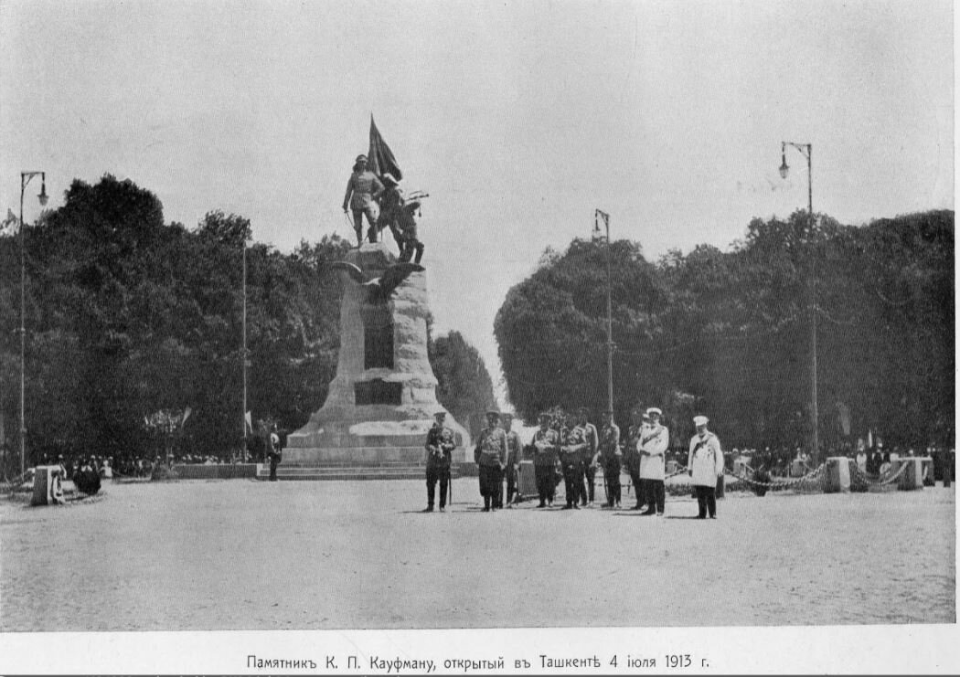 4 июля 1915 года состоялось торжественное открытия памятника К.П.Кауфман. Который простоял всего несколько лет, сносили его по частям: сначала собственно генерала, затем оказавшихся вполне самодостаточными солдат