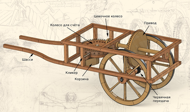Все рукотворные предметы вокруг нас были когда-то чьей-то мечтой или фантазией, над которой смеялись, не веря в ее осуществимость или актуальность. Автомобиль не является исключением. В статье мы окунемся в историю и постараемся разобраться, как безумная идея Леонардо да Винчи постепенно превратилась в Jaguar I-PACE. Для этого уделим внимание трем ключевым моментам: концепция, первая машина с ДВС и непревзойденный I-PACE. Концепция автомобиля Леонарда да Винчи Концепция машины Леонарда да Винчи представляет собой деревянную телегу с механизмом, который делает ее самодвижущимся устройством. Назвать ее автомобилем нельзя, но с учетом конструкции можно смело считать предком или прообразом современных машин. Чертежи аппарата были созданы итальянским ученым в 1478 году. Прототип не был рассчитан на массовое производство или комфортное использование. В сохранившихся набросках даже не предусмотрено сидений. Энергию для самостоятельного движения деревянной телеги накапливали пружины, которые