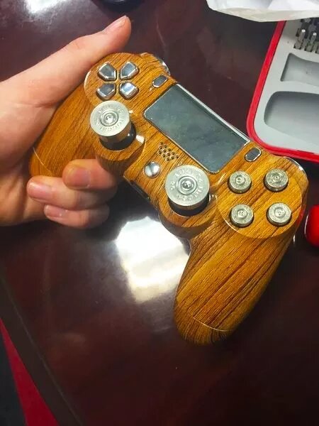 Пользователь PS4 собрал кастомный «деревянный» контроллер DualShock 4 с патронами вместо кнопок