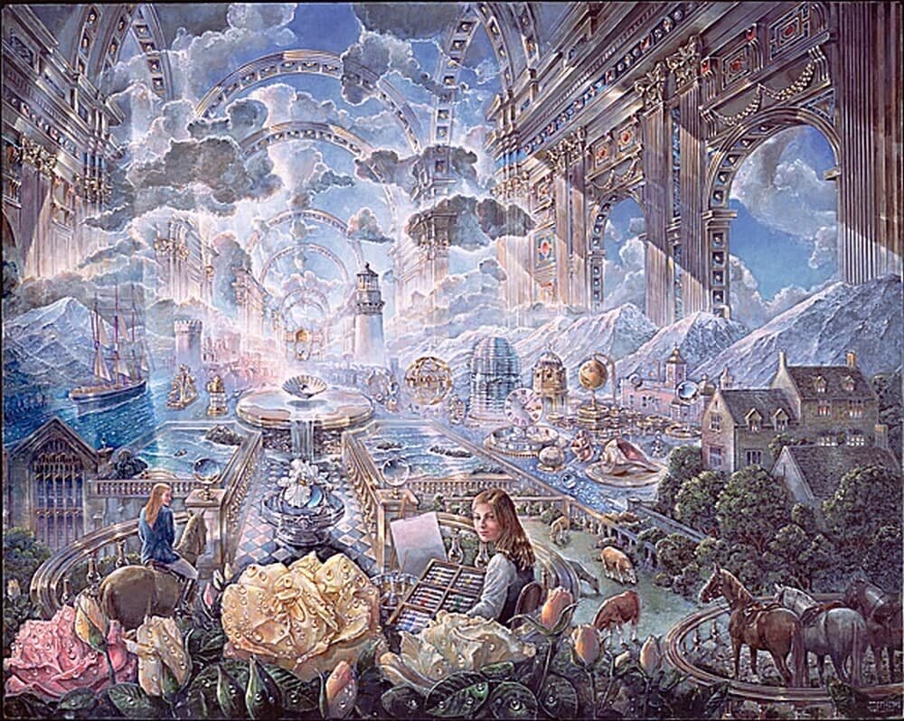 И все мы жили в некоем живом природном пространстве, благоустроенном, с парками и фонтанами, с библиотеками и концертными залами, с площадкой для приземления летательных аппаратов. Всё это было вплетено в природу, с большими озерами, яхтами. А рядом теплицы. Недалеко лошади и разные животные. Вот эти фантастические картинки из интернета примерно отображают увиденное.