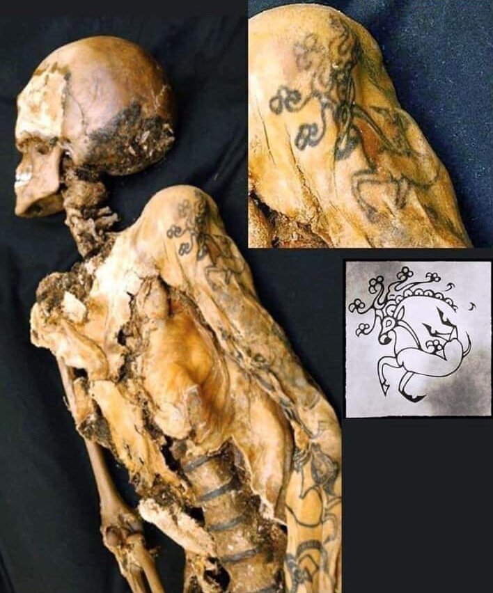 Одно из старейших свидетельств тату в истории - татуировка скифского оленя на мумии «Алтайской принцессы» возрастом 2500 лет.