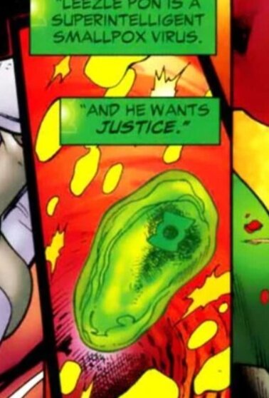 1. Лизл Пон. Лизл Пон является разумным вирусом оспы и состоит в Корпусе Зеленых Фонарей. Лизл Пон ни раз помогал Зелёным Фонарям справляться с разными угрозами. Персонаж особенно полезен в битвах с врагами, которые слишком малы для других Фонарей.