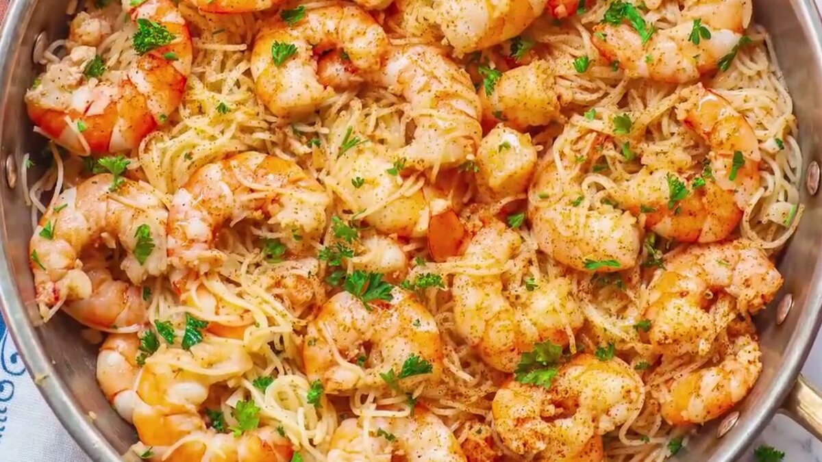 Готовим креветки ресторанного качества. Креветки с дымчатым чесночным маслом и спагетти