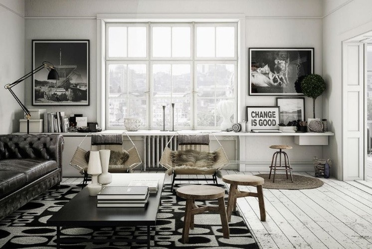 Вы, наверное, знаете, что белый лучше всех отражает естественный свет, что придает хорошее освещение всему пространству. Поэтому окна большие, с белыми деревянными рамами, шторы чаще не используются совсем. Северные страны — это не мегаполисы. Жизнь в них буквально соприкасается с природой, и интерьеры полностью соответствуют этому образу жизни. Стиль стал популярен благодаря своей простоте и доступности, кроме того он экологичен, что сейчас очень ценится во всем мире.