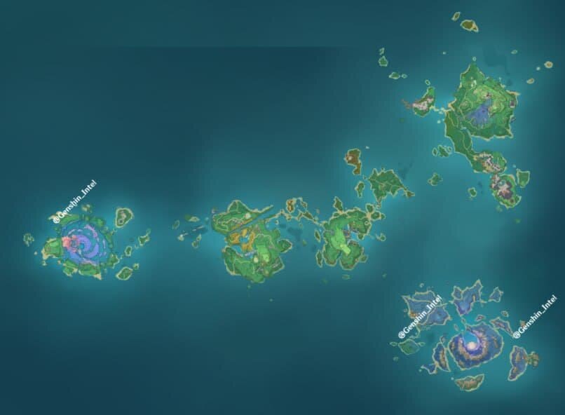 Согласно утечкам, в будущем обновлении появится два новых острова Инадзумы - Ватацуми и Сэйрай. Утечка карты Ватацуми показывает розово-лиловую местность в виде спирали над внутренним морем. В центре острова находится святилище Сангономия, которое станет важным местом в Инадзуме. В этой фиолетовой области храм будет окружён горами и водопадами. На острове много ярко окрашенный растений. Ватацуми может иметь потрясающий дизайн.