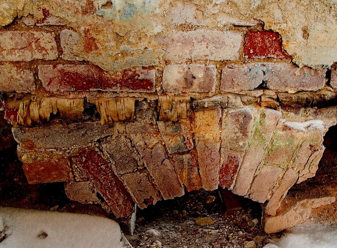 Так же для гидроизоляции активно использовалась глина. Ее смешивали с песком, чтобы не трескалась и делали чашеобразный глиняный замок по периметру здания. Причем глину не просто насыпали, а обмазывали снаружи фундамент, и согласно строительному уставу того времени пазухи снаружи требовалось заполнить мятой глиной с уплотнением.