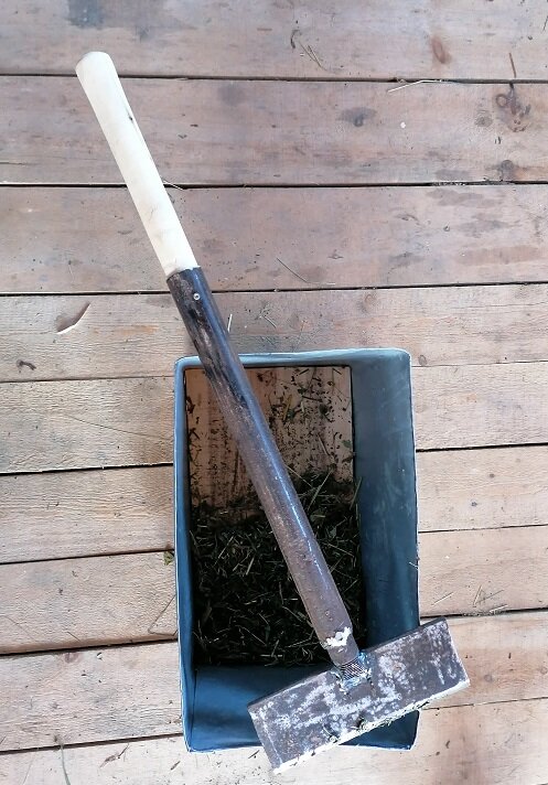 Несколько лет занимаюсь заготовкой и производством иван-чая а также травяных чаев. И в последнее время, в связи с расширением ассортимента возникла проблема измельчения трав. Раньше травяные добавки в небольших количествах получалось измельчать при помощи секатора, но обороты увеличиваются и секатор уже натер кровяные мозоли. А тут еще и кролики появились в хозяйстве. Для них делаются гранулы из травы, которую нужно измельчить предварительно. И тут уж вообще без траворезки ни как не обойтись. Нужно что то было срочно придумывать для ускорения процесса. Лучше всего , сделать электрическую траворезку и даже имеется для нее мотор, ножи и часть металла. Но только часть. А поскольку траворезка нужна уже срочно, то было решено сделать ручную сечку травы из имеющихся подручных материалов. Для начала нужно сделать саму сечку. Для этого нашлась вполне увесистая рессора. Чем тяжелее режущая часть, тем больший слой травы она сможет перерубить за один удар. Отрезаем кусок рессоры примерно 20 с