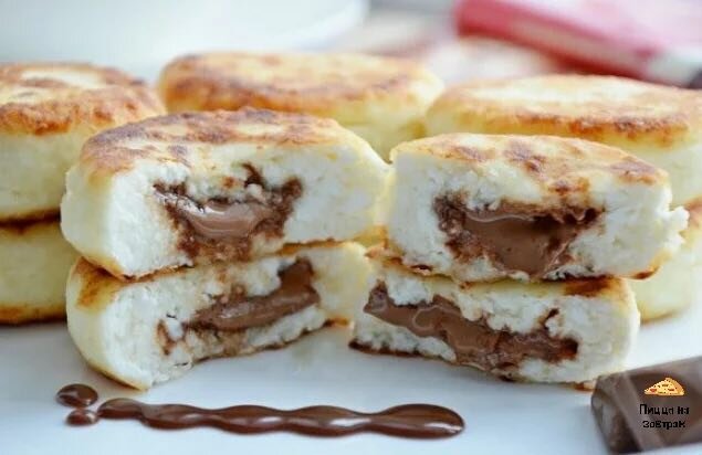 Всем привет! Кто здесь любит сырники? Уверен, что таких много - отзовитесь в комментариях! В моей семье все тоже обожают сырники на завтрак. И я придумала способ, как сделать любимое блюдо угощение еще вкуснее! Скорее читайте рецепт и сохраняйте, чтобы скорее попробовать Нам понадобится: Как готовим: 1. В глубокой емкости взбиваем сахар с яйцом в пену. 2. Далее добавляем творог и как следует растираем. Затем добавляем муку и еще раз все тщательно перемешиваем. Вкус сырников напрямую зависит от творога. Поэтому лучше выбирать деревенский жирный творог, у меня сегодня творог 9% жирности. Если творог выделяет много воды, лучше его как следует отжать. 3. Тесто готово. Теперь начинаем руками формировать сырники. Делаем кругляш и в серединку кладем кусочек шоколада, сверху закрываем тестом. 4. Слепленные сырники слегка посыпаем мукой, чтобы не липли. 5. Обжариваем наши сырники на разогретой сковороде с небольшим количеством масла. Жарить сырники важно на маленьком огне, так они хорош