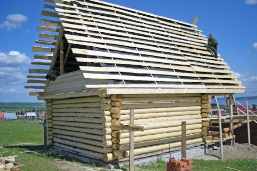 Одним из важных этапов строительства дома из сруба является монтаж нижней и верхней обвязки, а также монтаж межэтажных балок. Перед тем как начать строительство дома на фундамент необходимо установить нижнюю обвязку, которая состоит из досок, которые укладывают поверх песчано-гравийной подушки, затем укладывают гидроизоляцию, и только потом монтируют нижнюю обвязку. Обвязка укладывается на расстоянии 0,5 метра от стен фундамента. После установки обвязки на неё монтируются доски верхней обвязки. Доски верхней и нижней обвязки должны быть обработаны антипиренами, чтобы не выделять в дальнейшем вредных веществ, так как доски будут находиться внутри помещения. Монтаж верхней обвязки производится по заранее подготовленным и зафиксированным колышками и рейками отметкам. Для того чтобы закрепить верхнюю обвязку по нижней надо её сначала прикрутить к фундаментам, а затем уже установить в гнёзда балок и сделать настил пола. Если дом стоит на свайном фундаменте, то под верхнюю обвязку тоже уст