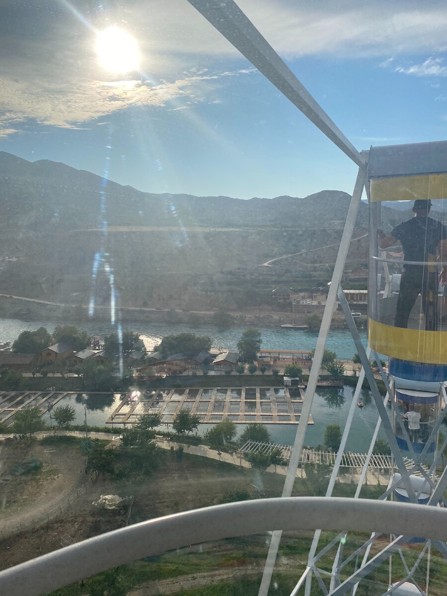 ГлавРыба. Говорят года 3 назад кроме форелевого хозяйства здесь толком ничего и не было . Сейчас же турбаза включает в себя мини зоопарк , детские площадки , детский аквапарк , колесо обозрения , катера , рестораны , где можно вкусно поесть и наверняка много все ещё :) в общем если Вы с детьми , обязательно надо сюда заехать , если у Вас бюджетный отдых , все равно приезжайте :). Конечно ребёнок не мог не увидеть аквапарк и первым делом мы пошли в ту сторону . Оказалось , что взрослым в воду нельзя , только детям . Родители могут или оставить ребёнка под свою ответственность или наблюдать с берега , сидя за столиками или на лежаках . Глубина не большая , горки быстрые . 500р - весь день . Сын у меня не из трусливых , телефон у него тоже есть , поэтому оставив его , мы с дядей Асадула , Эльмирой и Алей пошли гулять по ГлавРыбе. Вообще , восхищаюсь нашим гидом-водителем , сколько у него терпения , провести весь день с 3 женщинами 😂. Нам провели небольшую экскурсию в горницу , рассказ