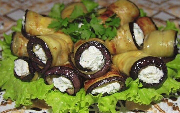 Очень вкусная закуска "Баклажанные рулетики с творожным сыром"