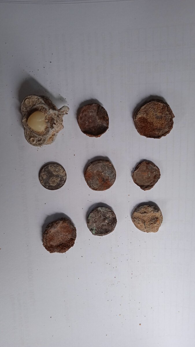 Август решено было провести на берегу Чёрного моря, загорая по мере возможности, но прячась днем от палящих лучей испепеляющего Солнца. Дорога на юг на машине заняла рекордные 3 с половиной дня, но в своё оправдание скажу что заезжал на старинную разрушенную деревянную церковь, вернее хотел заехать, но дороги не нашел и пришлось походить по урочищу недалеко, которое было с ямками камрадов, но все-же два обручальных колечка выцепил. Если кому интересно, место это недалеко от Самары. По приезду пару дней заняла акклиматизации, купание, отдых от дороги и первый выход с прибором на пляж случился утром в пасмурную погоду. Коп был недолгим, зарядивший на час дождик спутал все планы. Позавтракав и, поблагодарив судьбу за пасмурное небо, вышел второй раз покопать, выбрав из широкого многокилометрового пляжа волейбольную площадку. На удивление на такой небольшой площади мусорных сигналов было мало, ни пробок от бутылок, ни языков от алюминиевых банок найдено не было. Часто отображаемые "ме