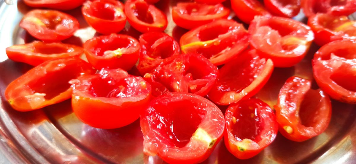 С ранней весны, не покладая рук все трудятся на грядке ради получения большого урожая. Применяют новые методы и способы обработки, экспериментируют с удобрениями. А затем наступает новый этап. Переработка и заготовка всего этого урожая. Как обычно все перестраховались и выросло в несколько раз больше чем требовалось. Вот тут и начинаются поиски новых блюд и методов заготовки. Несколько лет подряд была мода на различные заморозки. Замораживались наборы для блюд, полуфабрикаты, заготовки, овощи и фрукты, ягоды. Теперь сушат. Вяленые томаты В этом году я в первый раз готовлю вяленые томаты. Никогда раньше этим не занималась, да и не пробовала вяленые томаты никогда. Но поддалась новым веяниям и попробовала. Результат превзошел мои ожидания. Очень вкусно. Как только попробуете сразу отпадет вопрос как их использовать и с чем есть. Готовить их очень просто. Но заниматься этим нужно утром. Чтобы томаты успели высохнуть и вы их смогли законсервировать вечером. Берем небольшие мясистые