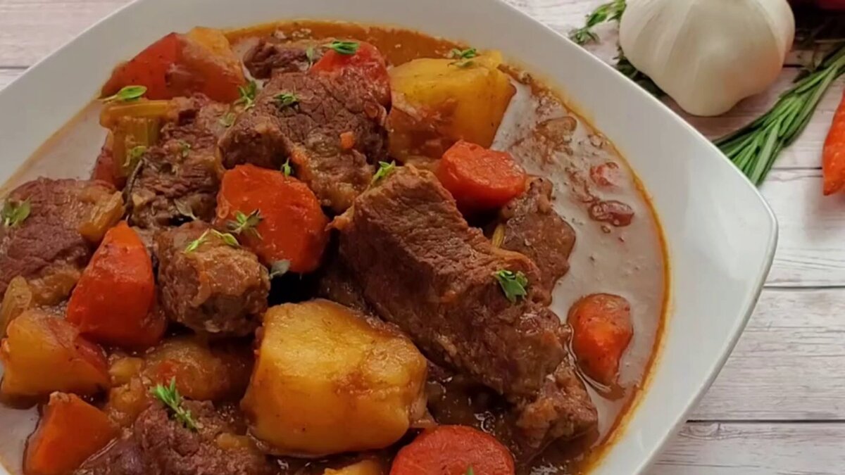 Блюдо, которое согреет зимой. Тушеная говядина с овощами, тимьяном и розмарином