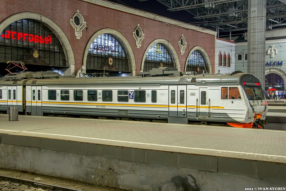 1. Вечернее, практически ночное, время, это тот момент, когда электропоезда практически исчезают с железных дорог столицы. Из всего многообразия у перронов «дремал» #демиховский_монстр электропоезд ЭД4М-0451.