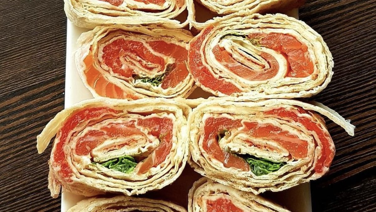 - Соус Шрирача (умеренно острый соус) Удаляем все кости из рыбы и режем на одинаковые куски. Если не получается, то самые толстые куски оставляем на последок. Соус выливайте на край лаваша и заворачивайте плотно. Далее покрываем всю поверхность сыром. Выкладываем рыбу - делаем одно завертывание. После этого выкладываем много салатных листьев, посыпаем черным перцем. Далее выкладываем рыбу, делаем 2 оборота и так до самого конца лаваша. Обертываем пищевой пленкой и оставляем в холодильнике на 1 час.