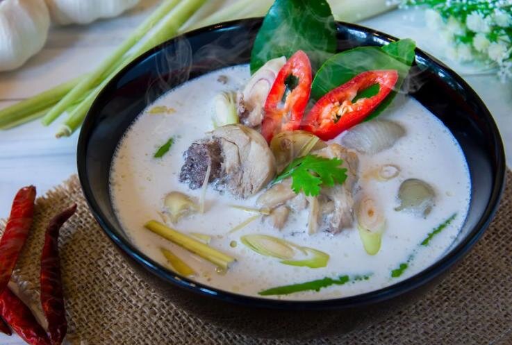 Ингредиенты: * Паста для том кха 3 ст.л * Вода 600 мл * Кококсовое молоко 400 мл * Рыбный соус 2 ст.л * Куриное филе 2 половинки * Перчик Чили на ваш вкус * Грибы шиитаке тоже по вкусу * Морковка * Лук зелёный * Кинза Рецепт: 1. Замачиваем грибы в воде на 2-3 часа. 2. Заливаем в кастрюлю воду и кококсовое молоко, доводим до кипения. 3. Нарезаем курицу и овощи с зеленью, закидываем в кипящую жижку. Добавляем пасту для том кха и рыбный соус. 4. Следом идут шиитаке и перчик. 5. Варим до готовности курицы. 6. Проще простого, с любовью, ваша Леночка