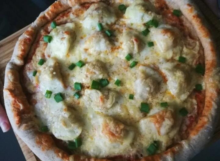 Ингредиенты: - 1 пачка растаявших пельменей - Колбаса или Ветчина - 1 спелый томат - 1 соленый огурец - Моцарелла - Любой твёрдый сыр - Майонез, Кетчуп, Горчица 1. Пельмени размять в однородное пельменистое тесто. Сверху смазать соусов в равных пропорциях. 2. Выкладываем по очереди: колбаска, помидоры, огурцы, моцарелла и любой другой сыр. 3. Выпекаем при 180 гр. 30 минут. Можно присыпать любой зеленушкой 😊