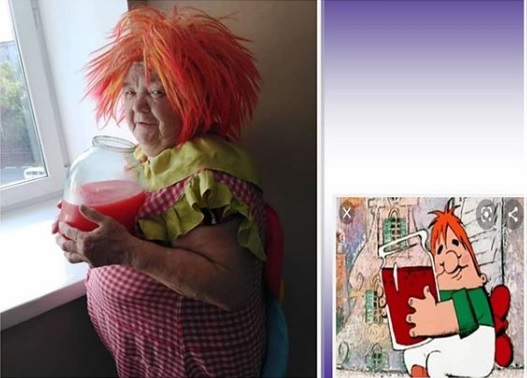 В Белогорске Амурской области жители отделения специального дома одиноких престарелых приняли участие в онлайн-конкурсе «Фото-мульт». Они изображали любимых героев из мультфильма «Малыш и Карлсон». Герои мультфильма в исполнении пенсионеров получились очень яркими, эмоциональными и вызвали бурную реакцию у пользователей Сети. Бабушек поддержали восторженными комментариями и пожелали им никогда не стареть душой. Некоторые уверенно заявили, что пенсионеры запросто «уделают молодёжь». - Даже в самоизоляции наши пенсионеры знают, как разнообразить свой досуг. В рамках онлайн-конкурса «Фотомульт» специалисты и активные жители дома решили не пропустить такую возможность и принять в нём участие, вспомнить детство, - рассказывает психолог Елена Миронова. Участниками «Фотомульта» стали Надежда Максимовна Плетнёва, Татьяна Ивановна Шестакова, Татьяна Владимировна Полякова, Наталья Алексеевна Беленко и Елена Александровна Миронова. Они старались не просто изобразить героя, но и показать художеств