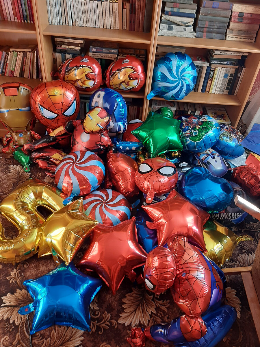Всем доброго времени суток! Я мама двои деток и самое моё любимое занятие, подготовка их дней рождений. Ловите идеи по созданию красоты. В этом году у нас была Гавайская вечеринка (дочери), Геройская вечеринка ( сына). Геройская вечеринка! Вот фольгированые шары, заказанные на АлиЭкспрес. Такие шарики тематические фольгированные очень хорошо делаю день рождения особ. И , что самое главное очень нравится деткам. Ещё я заказала банер. В стиле нашего праздника. Как фотозону. Получилось очень круто. Советую эту идею. Стоит не очень дорого. В моем городе банер 2 × 1,7 стоил 1500 рублей. Возле банера я поставила цыфру 5, которую делала сама . И стойки из шариков. Уже смотрится лучше. Вот двор украшен шарами. Я натянула шнур и на них повесила шарики и получается как небо из шаров, над головой. Мне очень понравился такой вариант. И ещё стоячии фигуры героев. Е Очень советую нарезать бумагу для детей. Им это понравилось больше всего. Её можно подкидывать, это детям понравилось бол