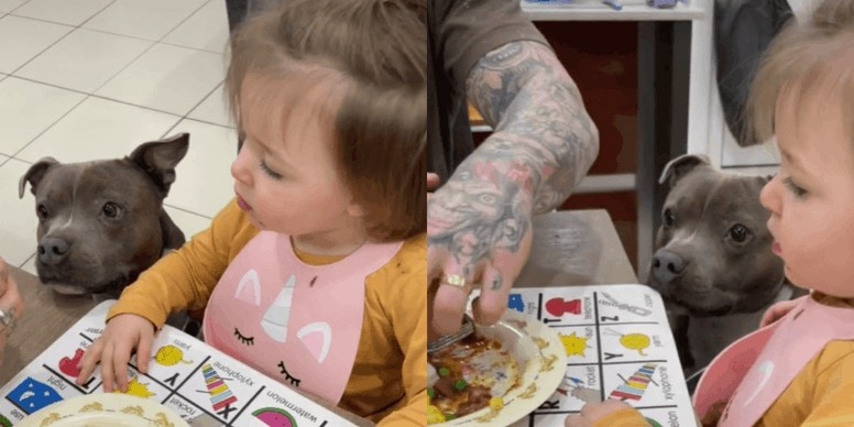Даже люди, далекие от мира животных, хорошо знают две вещи. Больше всего на свете собаки любят: а) своих самых близких людей и б) вкусно поесть. Хорошо, когда и то, и другое удается успешно совмещать, то есть получать «вкусняшки» от любимых хозяев. Да и вообще, как говорят в народе, ласковый теленок двух маток сосет! Щенок стаффордширского бультерьера Брик (Brick) живет в самой обычной семье: мама, папа и двое детей. Девочка Амия совсем маленькая. Взглянув на заглавные фотки к статье, любой читатель-родитель вспомнит времена, когда малышей приходилось кормить в ручном режиме. Буквально с «ложечки». Через многочисленные капризы и известное детское «не хочу». Убеждать, что то или иное блюдо полезно, без него «не вырастешь». Папа Амии (даром что папа) придумал отличный выход из положения. Малышке, конечно, не очень хотелось есть вареные овощи и прочую «зеленушку». И тогда на помощь был призван семейный любимец. Следует попутно отметить и еще один факт: стаффордширские бультерьеры имеют н