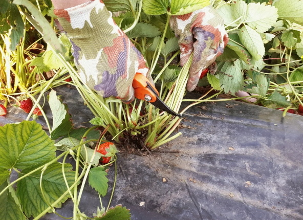 Отплодоносившую клубнику обязательно нужно подготовить к следующему сезону! Для этого у кустов клубники обрезают листья. К процедуре обрезки нужно подходить ответственно, чтобы уход не навредил кустам. Для чего обрезают клубнику после плодоношения? Как только клубника на моем участке зацветает, я ее ничем не обрабатываю до самого окончания сбора ягод. Хочется, чтобы ягода была экологически чистой, ведь вся химия, которой мы обрабатываем свой урожай, так или иначе попадает в организм человека. Клубника относится к растениям, у которых слабая сопротивляемость болезням и вредителям. Из-за отсутствия химической обработки моя клубника к концу сезона может заболеть гнилью. Также ее одолевает клубничный клещ. Здесь на помощь приходит обрезка. В процессе обрезки я удаляю больные или поврежденные листья, а также старые, но еще здоровые листики. Данная процедура дает кусту клубники новую жизнь! Как правильно омолаживать клубнику? Я подчистую срезаю все листья, усы и цветоносы. На кусте оставляю