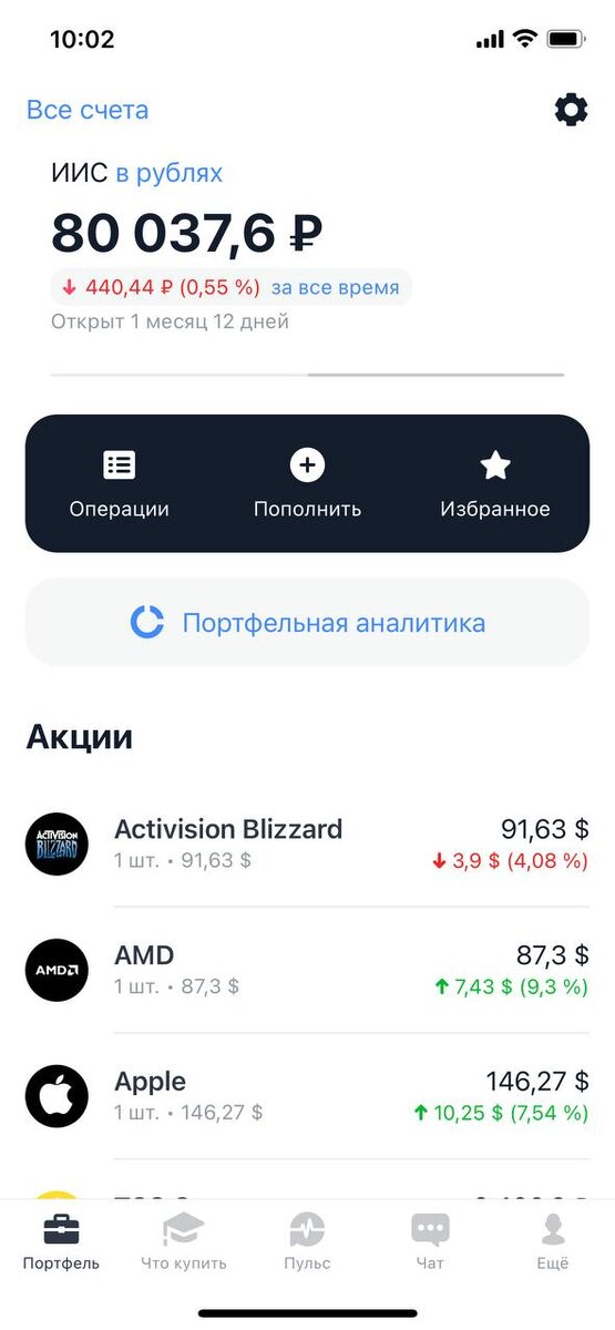 - много отдельных акций. для портфеля в 80 к это повышает риск.