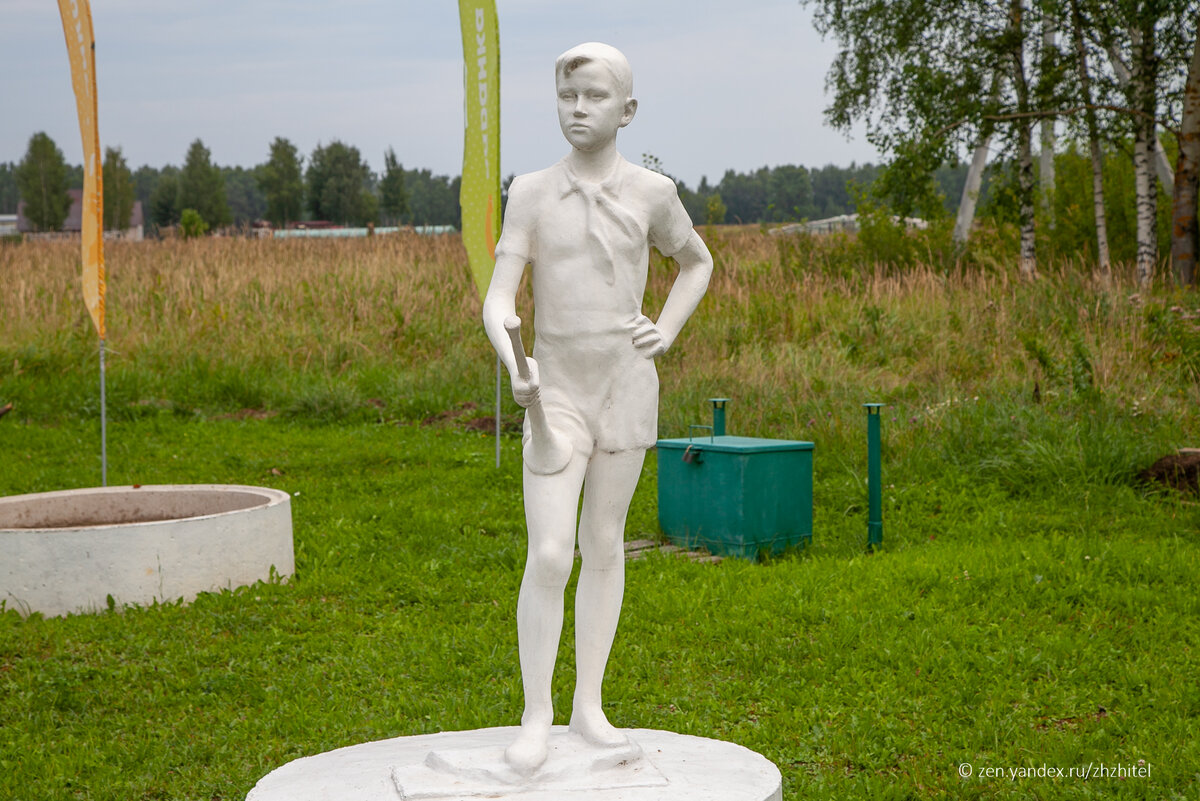 Из всех направлений во всех отраслях искусства в Советском Союзе самым важным был соцреализм. И прививали социалистический реализм с детства. Наверное, в каждом пионерлагере и детском парке были скульптуры, панно, барельефы, изображавшие целеустремленных и увлеченных советских детей. В 1990-е и 2000-е лагеря массово забрасывались или приватизировались. Скульптуры страдали от вандалов, ломались новыми владельцами бывших детских лагерей, ветшали от непогоды. Так что сейчас их осталось не так уж много. Представьте мое удивление, когда в Ярославской области около заправки на трассе М-8 «Холмогоры» мы увидели порядка десяти скульптур юных пионеров, спортсменов и школьников. Все скульптуры в прекрасном состоянии. Сюжеты стандартные для того периода: девушка со знаменем, пионер с горном, спортсменка. Возможно, сейчас не всем эти скульптуры по нраву, но лично мне нравятся. Напоминают о моем детстве. Когда-то я тоже был таким пацаном, смотрел вдаль в бинокль и мечтал о путешествиях. Координа