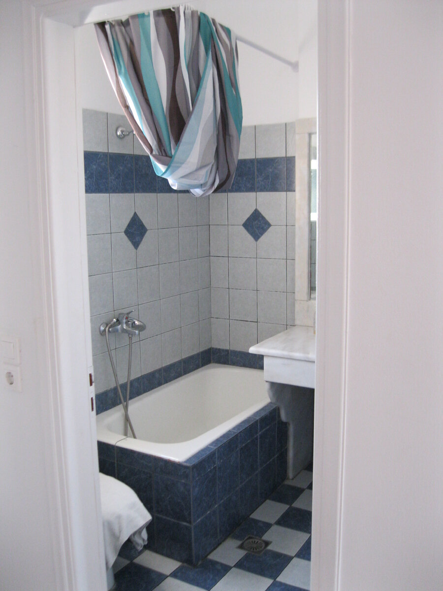 После сложных поисков гостиницы в Фире (буду так назвать населенный пункт, который считается столицей острова) я был в несколько разобранном состоянии из-за жары и больших перепадов высот. Поэтому пришлось произвести операцию «долгоеотмоканиевванне». Благо в номере была ванна... Хотелось бухнуться в кровать... Но времени на раскачку у меня было не так много, поэтому слегка разместился в номере отправился на разведку местности. Итак, вид с балкона шикарный, за 20 евро конечно не на кальдеру, а на обратную сторону острова, но …все же море. Направился в центр городка. Блин, ну что стоило хозяину апартаментов выложить в букинге картинку с оборотной стороне визитки отеля. Все оказалось просто, минут 10 пешком до автостанции по улице параллельной главной улице Фиры. На автостанции детально изучил расписание автобусов по острову. Я экономный, все-таки и на Санторини обошелся без такси. До всех интересных мест острова можно добраться на автобусах. Далее проследовал на главную площадь
