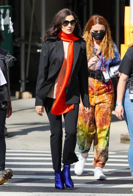 Долгий перерыв в своих стритстайл-выходах звезда фильма «Мумия» прерывает несколькими невероятно стильными образами. Нам особенно приглянулся ее последний аутфит, который можно считать образцом расставления фэшн-акцентов. Рэйчел примеряет лаконичный брючный костюм в total-black, который она эффектно дополняет алым шарфом с цветочным рисунком и сапогами в контрастном кобальтовом оттенке. Вайс завершает аутфит черными солнцезащитными очками и небрежной прической. Текст: MarieClaire.ru