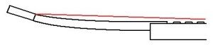 Как видно, гриф прямее, чем на примерах выше. В том случае, если гриф будет абсолютно прямым – струны будут лежать на грифе и сыграть что либо на такой гитаре будет невозможно, а потому он должен быть немного согнут.