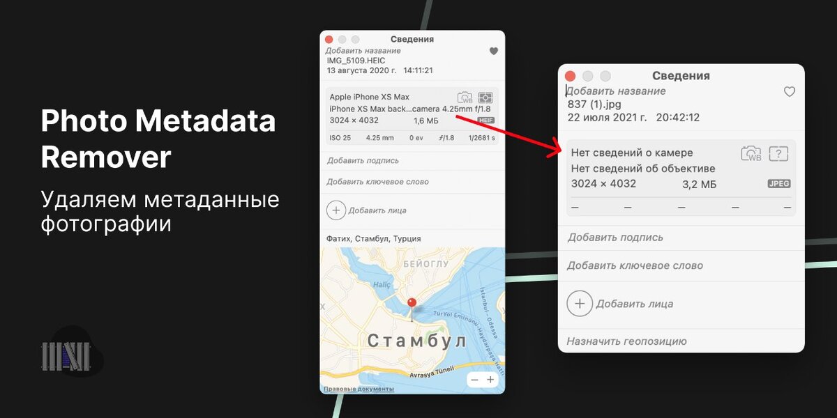 Поэтому заведите привычку очищать от метаданных фотографии перед отправкой. Лучше всего это делать через Photo Metadata Remover — это приложение на Android. Оно быстро удалит все метаданные фотографии. Интерфейс простой: выбираете из галереи/делаете фотографию, загружаете и получаете «очищенную» версию.