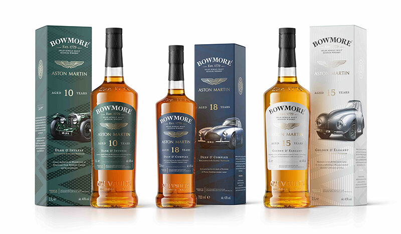Компания Beam Suntory выпустила специальную серию односолодового виски Bowmore для магазинов беспошлинной торговли Duty Free. Серия включает в себя три классических Bowmore в оригинальном дизайне от известного британского автопроизводителя Aston Martin. The Bowmore 10 Years Old Aston Martin LM10 Открывает серию классический Bowmore 10-летней выдержки. Дизайн виски посвящен знаменитому Aston Martin LM10, который был представлен на международном Гран-при в Le Mans в 1932 году. Виски представляет собой смесь спиртов с выдержкой в Butt- и Hogshead-бочках из европейского дуба. Классический дымный характер виски наполнен специями и нотами красных фруктов. Аромат богат высушенными на солнце фруктами, севильского апельсина и кленового сиропа. Вкус раскрывает ноты дыма, сухофруктов и морской соли. Финиш тает нотами дыма, грецкого ореха и специй. Виски разлит объемом 1 литр при крепости 40% ABV. The Bowmore 15 Year Old Aston Martin Atom 15-летний виски облачен в дизайн, навеянный концептуальной