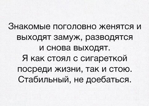 На данный момент, я разделяю девушек на три типа: Первый тип - шкура, которая поскакала на одном члене, а на следующей неделе - на другом. Будем честными, и назовём таких "девушек" - шлюхами. Второй тип девушек - проститутка. Она максимально старается проманипулировать парнем, с целью получения максимального количества материальных ништяков. Полная оплата счёта в кафе? "Ты что не мужик, ёпта?!". Навязывание парню как можно скорее расписаться в загсе. "Я же не шлюха какая-то, я хочу узаконить отношения!". Ну да, ведь настоящей безУсловной любви так важен штамп в паспорте. И самое интересное: "Давай заделаем ребёнка". Конечно, спустя некоторое время мы с тобой скорее всего разведёмся, и я потребую с тебя элементы на мелкого спиногрыза, а также отсужу половину твоего имущества, плюсом сделаю так, чтобы ты больше не смог видеться с родным ребёнком. Тем не менее - Давай Поженимся! И третий тип девушек - самые ценные девушки, лично для меня, имхо. Это те девушки, к примеру, которые встречали