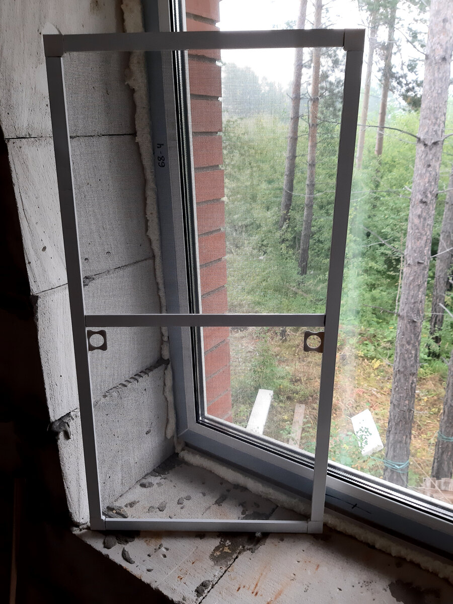 На прошедших выходных доразматывали теплые полы и вызвали замерщика. Собираемся делать полусухую стяжку. Ориентировочно в среду-четверг. А пока занялись москитными сетками, потому что стали появляться комары. И когда в дом приедут кошки, сетки тоже будут нужны. Вообще наши животные сетки не выносят, и достаточно сетки закрепить саморезами к окну дополнительно, чтобы кошки на улицу не ушли. Но без сеток особенно со вторым этажом - нельзя. Даже если кто-то ломанется ловить какую-то живность и своим весом продавит сетку, то с окна полетит как бы с парашютом на сетке, глядишь, не убьется. Ну, как занялись сетками: муж делает сетки, а я фетиширую процесс на телефон. Всего у нас 8 окон. Все очень нестандартные. На пробу купили готовый комплект типа "сделай сам" за 747 рубля. Из него получилось закрыть одно окно на втором этаже. А потом решили немного сэкономить и заказали необходимые материалы в фирме, которая окнами занимается. Вроде взяли все нужным метражом и по оптовым ценам, но в резу
