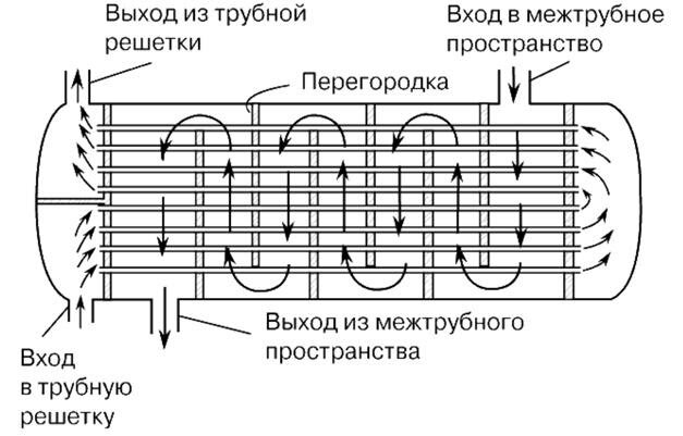 Аппараты бывают одноходовые и многоходовые. В первом варианте наполнитель перемещается по короткой траектории, пример – водонагреватель ВВП, применяемый в отопительных системах. Он подходит для зон, где не принципиальна величина теплообмена (разница температур окружающей среды и теплоносителя минимальна). Второй вид оснащен поперечными или продольными перегородками, обеспечивающими перенаправление потоков носителя. Многоходовые устройства используются в местах, где важна высокая скорость теплообмена.