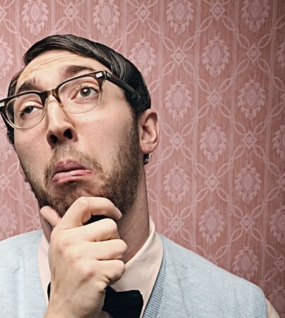 У мужчины от возбуждения этим вопросом приподнялись вперед волосы, до этого зачесанные назад.