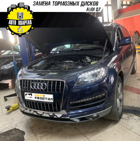 К нам приехала Ауди Q7 для установки новых перфорированных тормозных дисков и колодок.