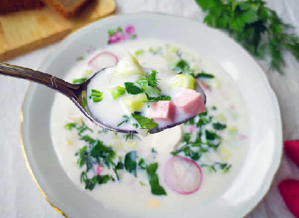 При всей простоте этого блюда, оно имеет множество вариантов: окрошку готовят на основе кваса, кефира, сыворотки. Если хотите сделать блюдо более легким и низкокалорийным, можно разбавить кефир минералкой 1:1. Если же хотите добавить сытности, густоты и вкуса – замените часть кефира сметаной. Можно даже добавить несколько ложек домашнего майонеза.