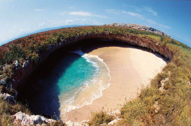 Широкие просторы Северной Америки поражают своими природными чудесами. Одним из таких загадочных мест является скрытый пляж в Мексике. Этот райский уголок круглый год привлекает к себе не только местных представителей фауны, но и туристов из многих стран. Спрятанный под землей секретный пляж одного из островов Мариета, что в Мексике, может похвастаться кристально чистой водой.